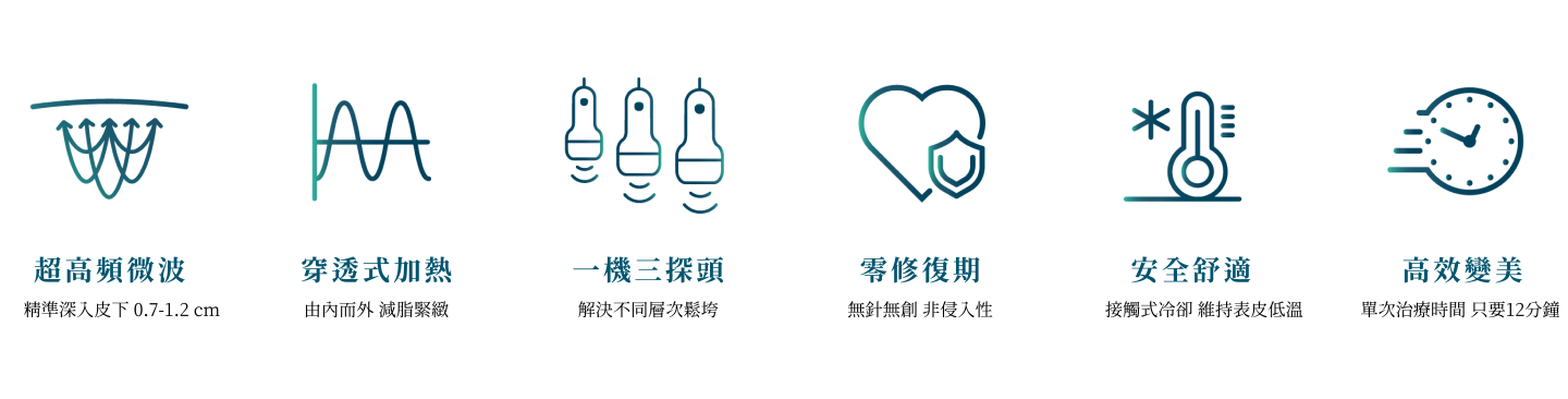 搭配三種深度探頭,能精準改善不同需求。透過專利微波技術,深入加熱皮下組織,