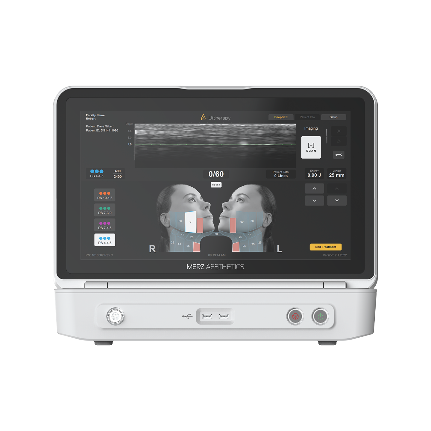 具有比上一代更寬廣、更清晰、更即時的超音波影像,將探頭底下的皮膚各個分層都清楚顯示在螢幕上,讓醫師在操作儀器時,如同有一雙透視眼,完整掌控治療深度,每一發都打在最需要、最精確的位置。